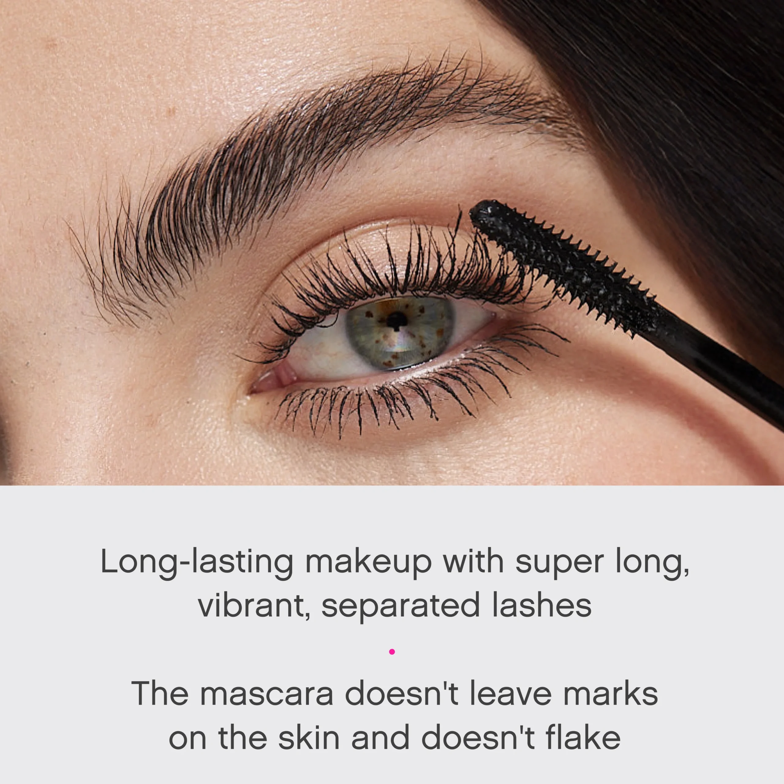 Το ειδικό της βουρτσάκι με τρίχες δύο μήκους σηκώνει, επιμηκύνει και δίνει όγκο σε κάθε βλεφαρίδα — όποιου τύπου κι αν είναι. Είτε σε πιάσει η βροχή είτε ξημερωθείς στο χορό, αυτή η μάσκαρα μένει αψεγάδιαστη μέχρι τέλους.